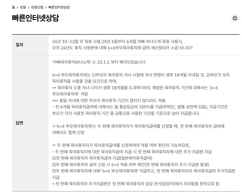 * 출산 후 18개월 이내 육아휴직 사용 시 통합신청 가능